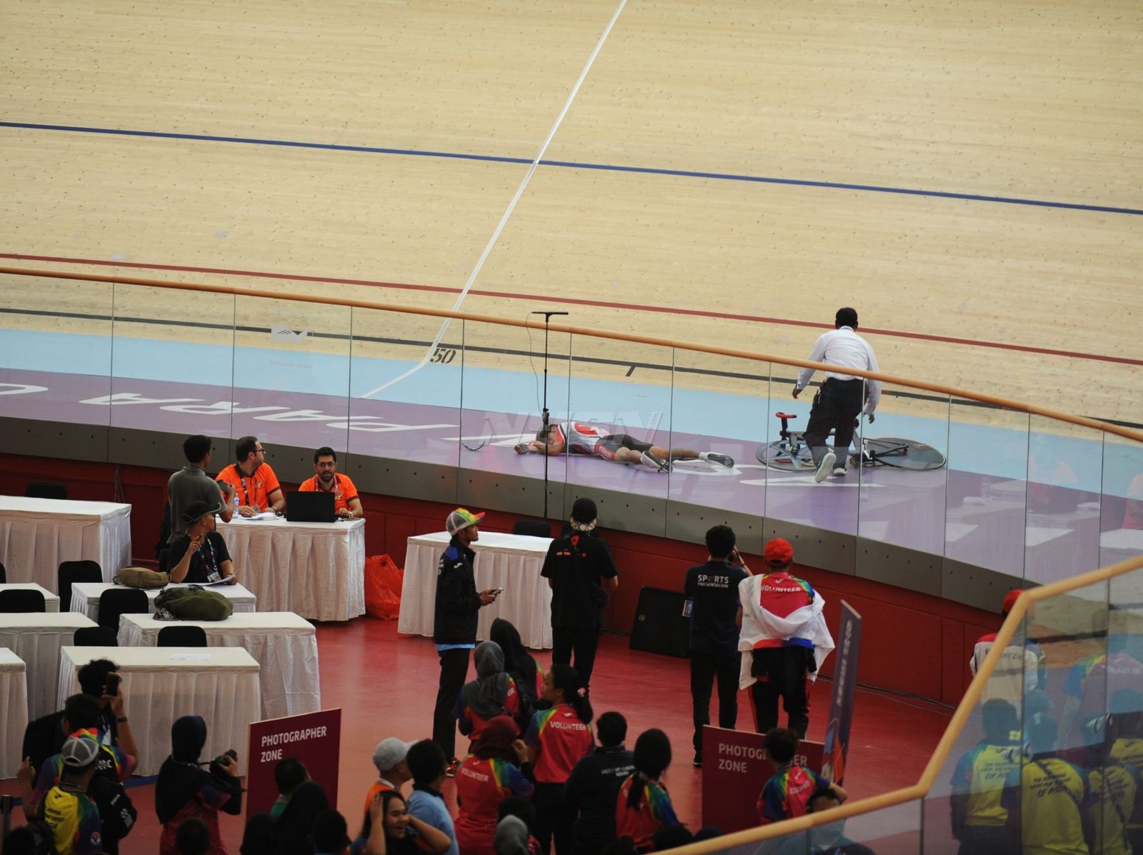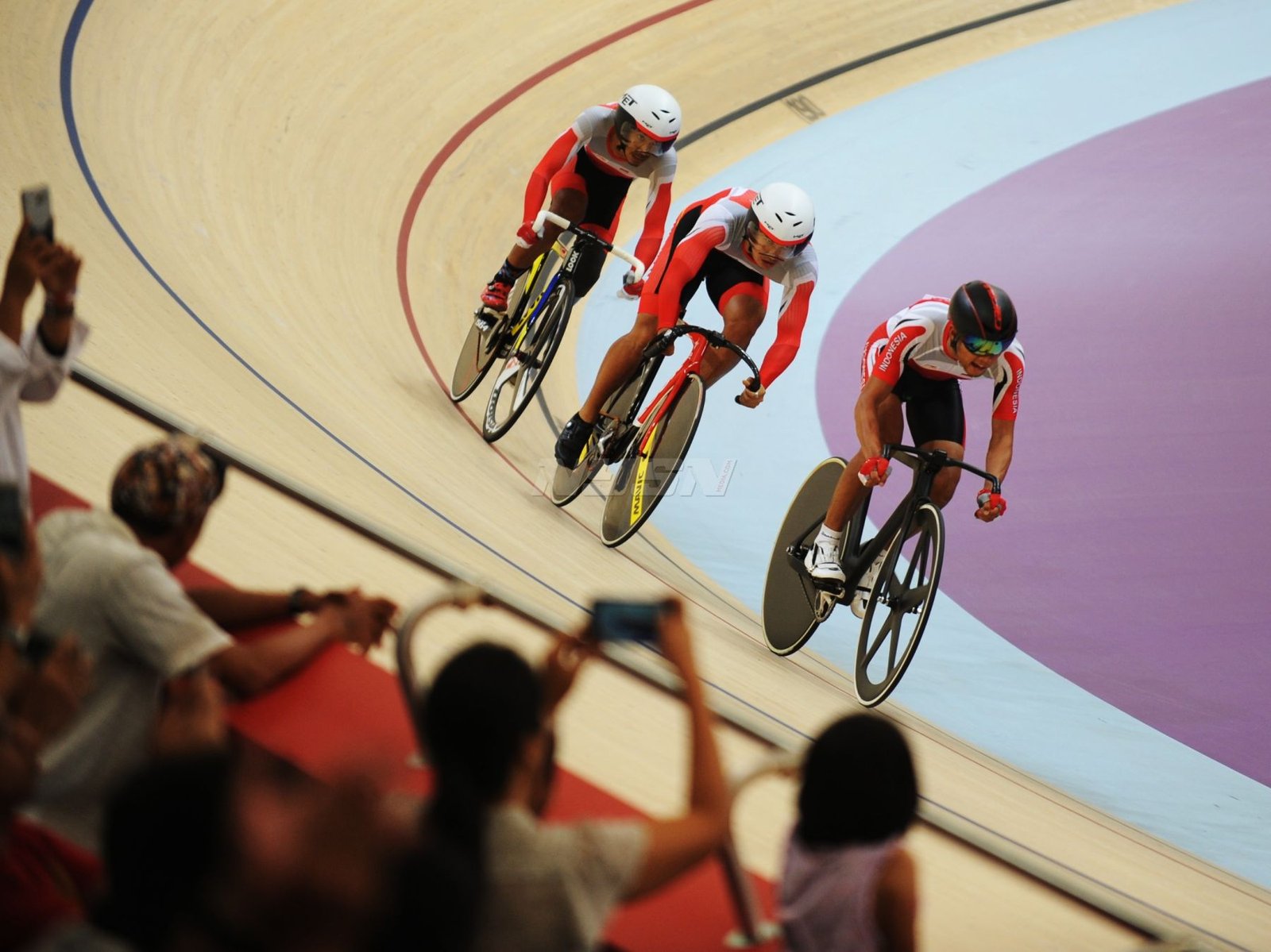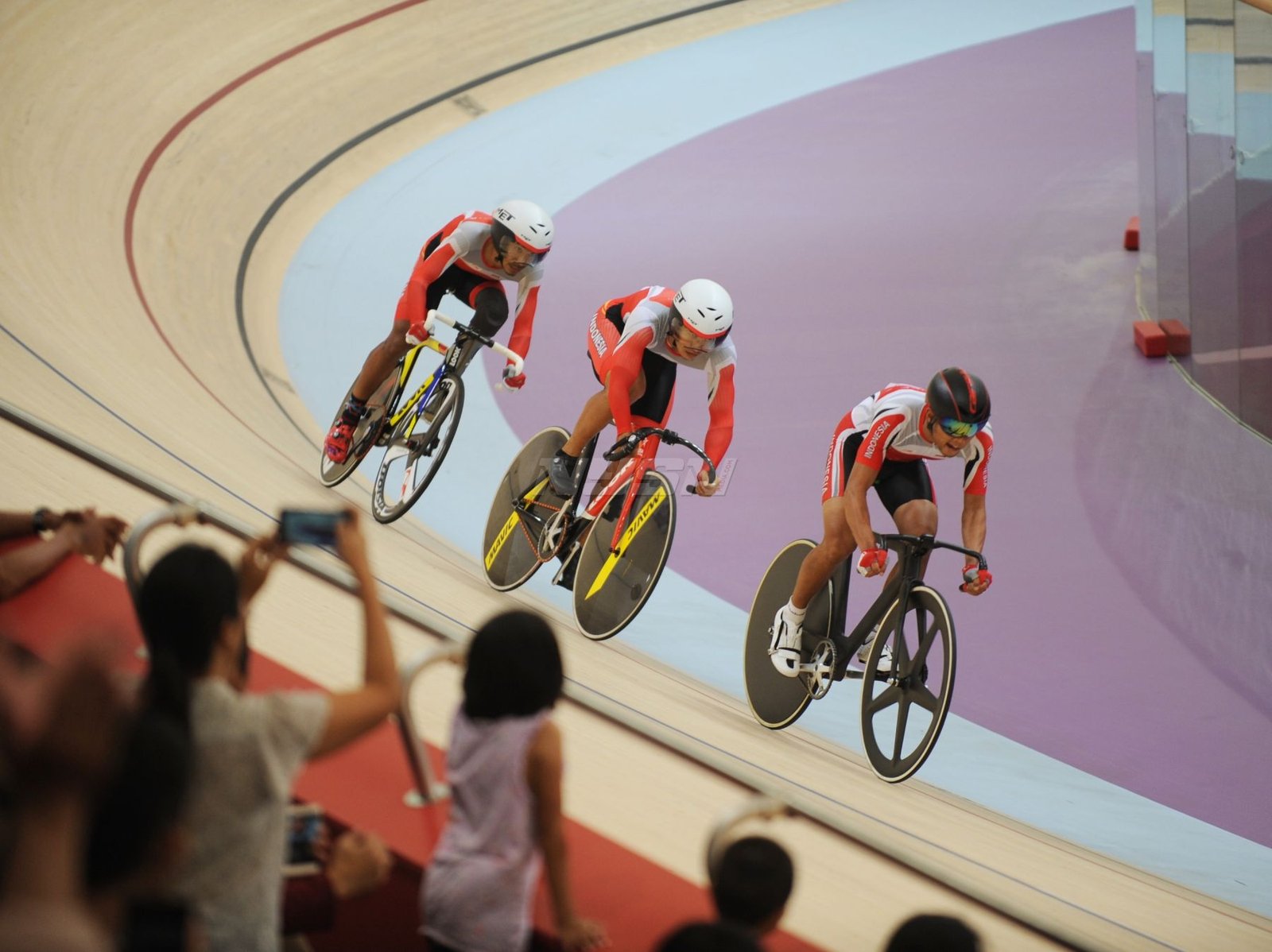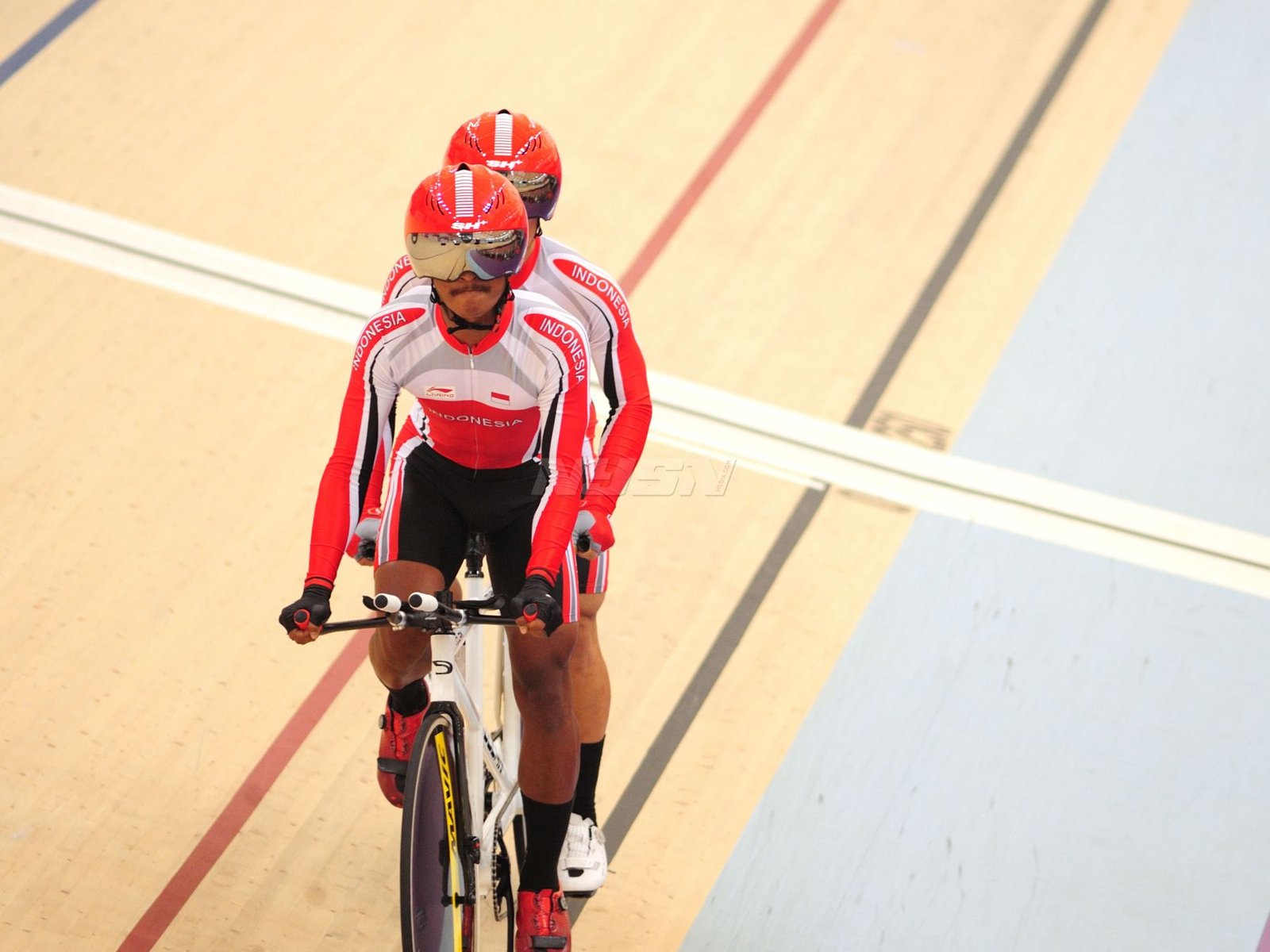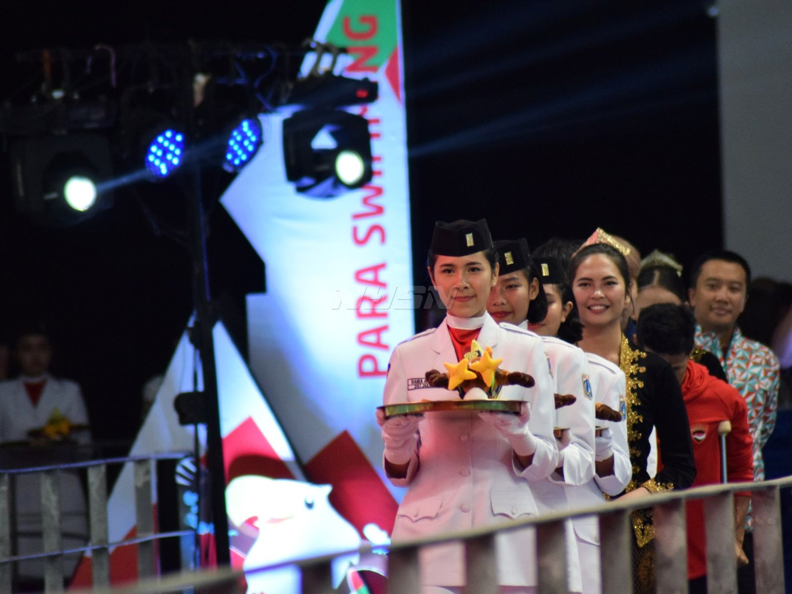 Ukun Rukaendi/Hary Susanto memberi selamat kepada pasangan Korea Selatan (Korsel) Sun Woo Jeon/Dong Jae Joo setelah takluk di laga perempat final cabang olahraga bulutangkis kategori SL3-SL4 (kecacatan kaki), di Istora Senayan, Jakarta (11/10). (Rizal/NYSN)