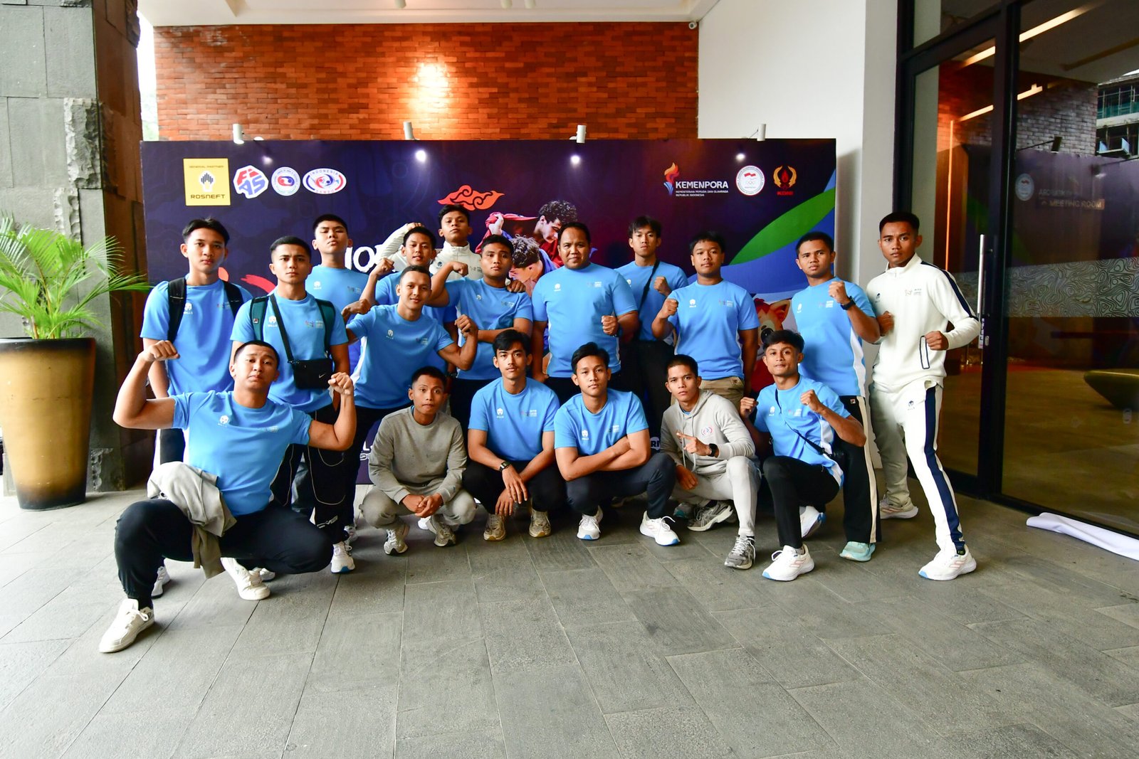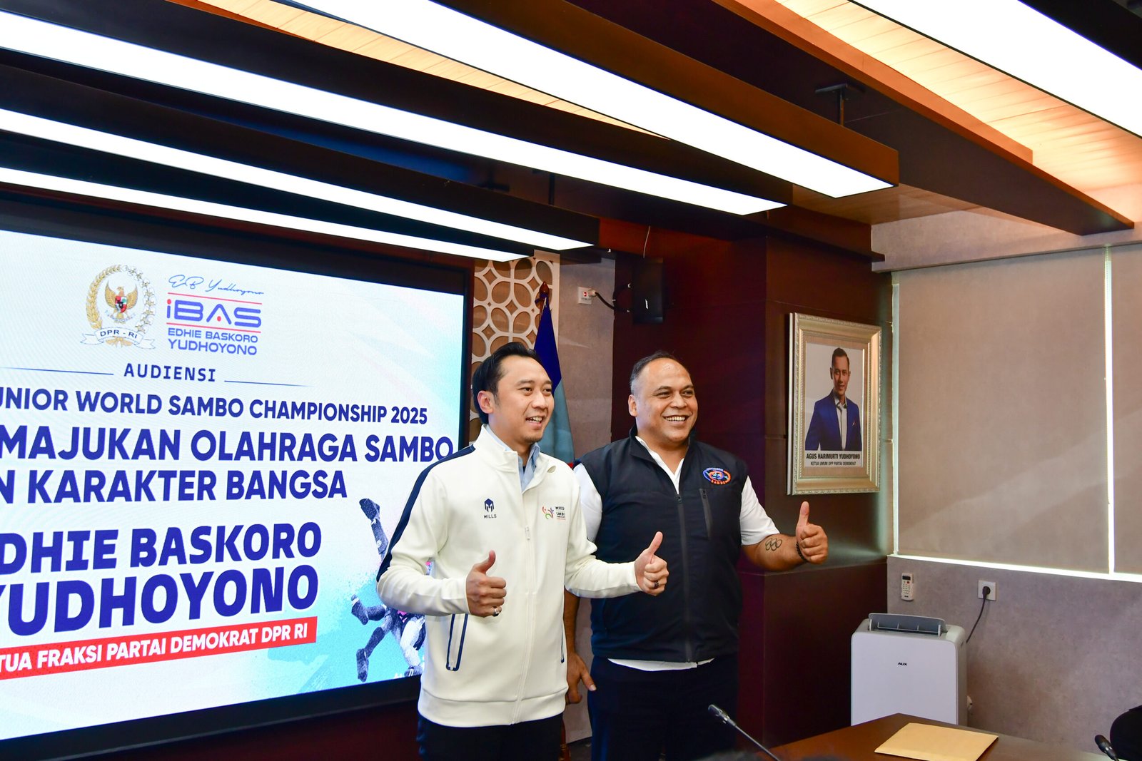 Atlet beladiri sambo Indonesia berfoto bersama Wakil Ketua MPR RI periode 2024–2029 Edhie Baskoro Yudhoyono setelah melakukan audiensi di DPR MPR RI (29/09). Sebelum keberangkatan ke World Youth and Junior Sambo Championship 2025 di JSI Megamendung 3 s/d 5 Oktober 2025.