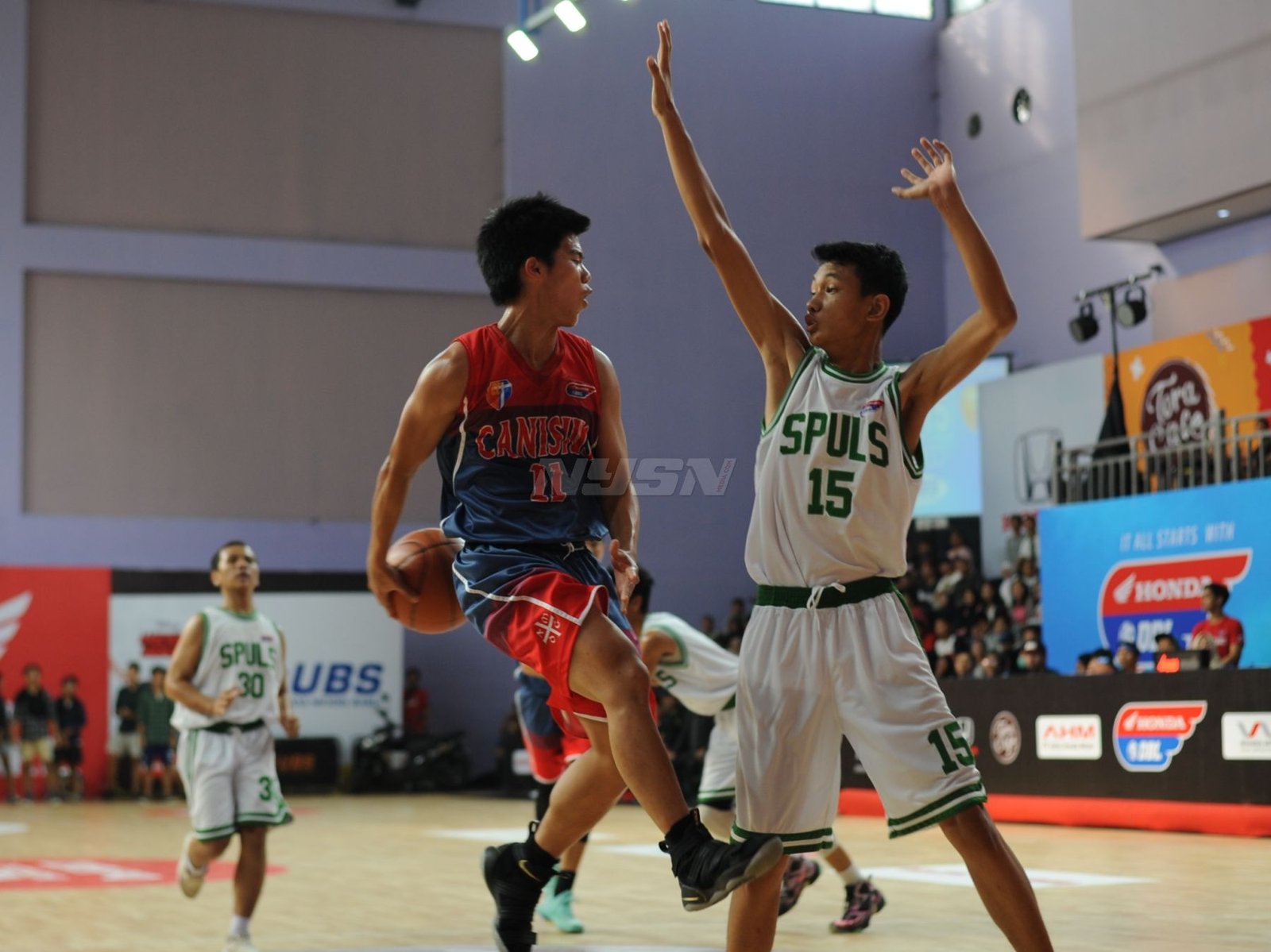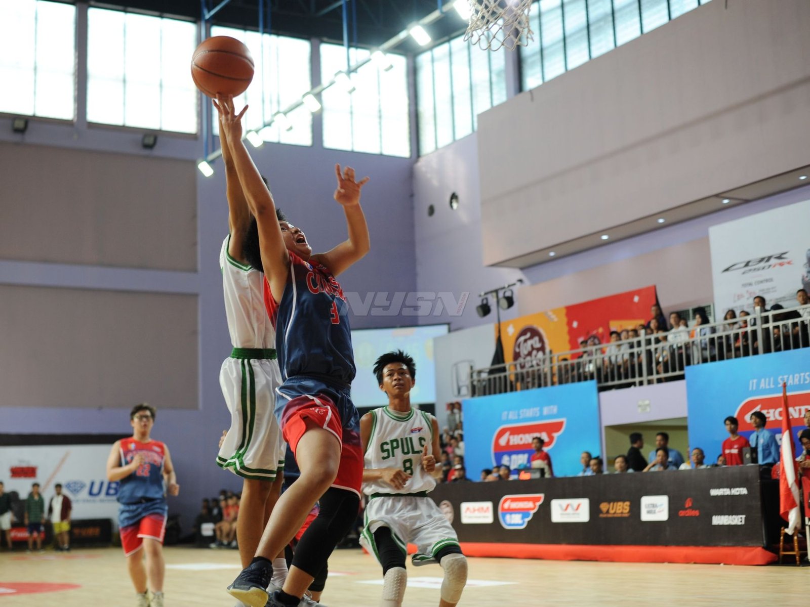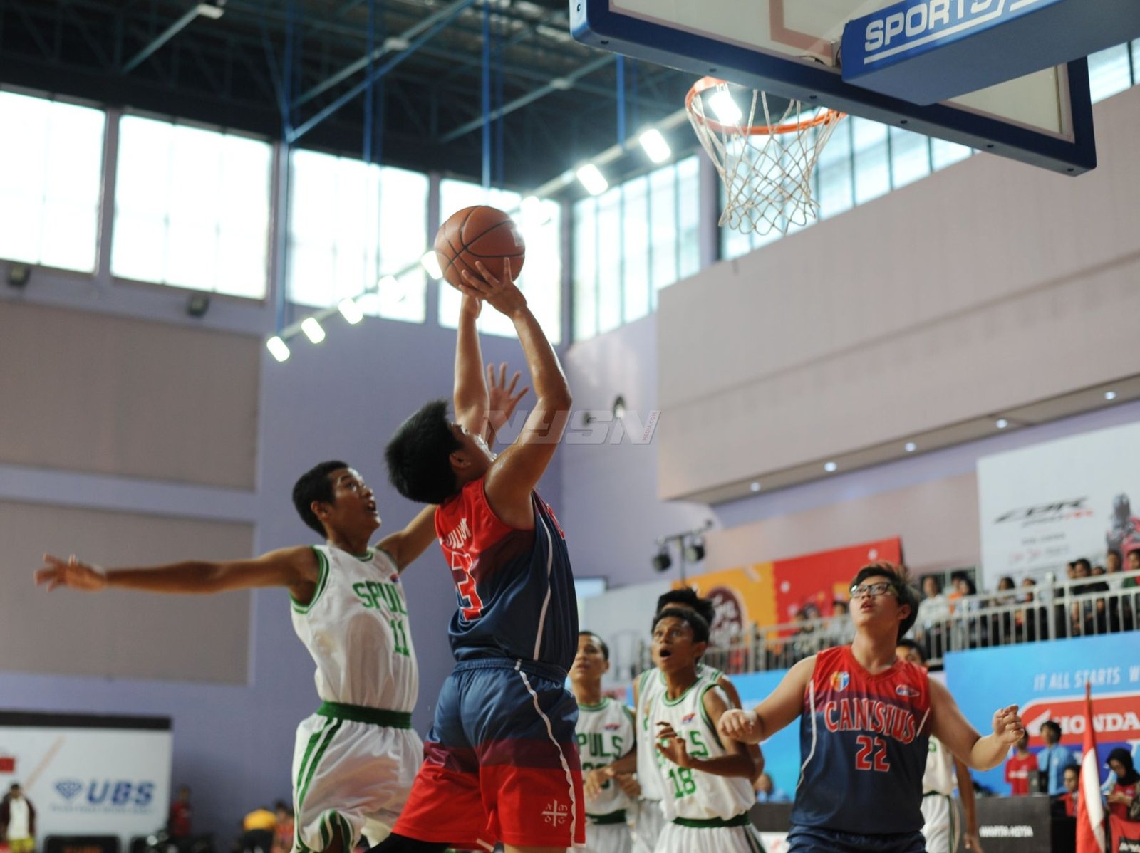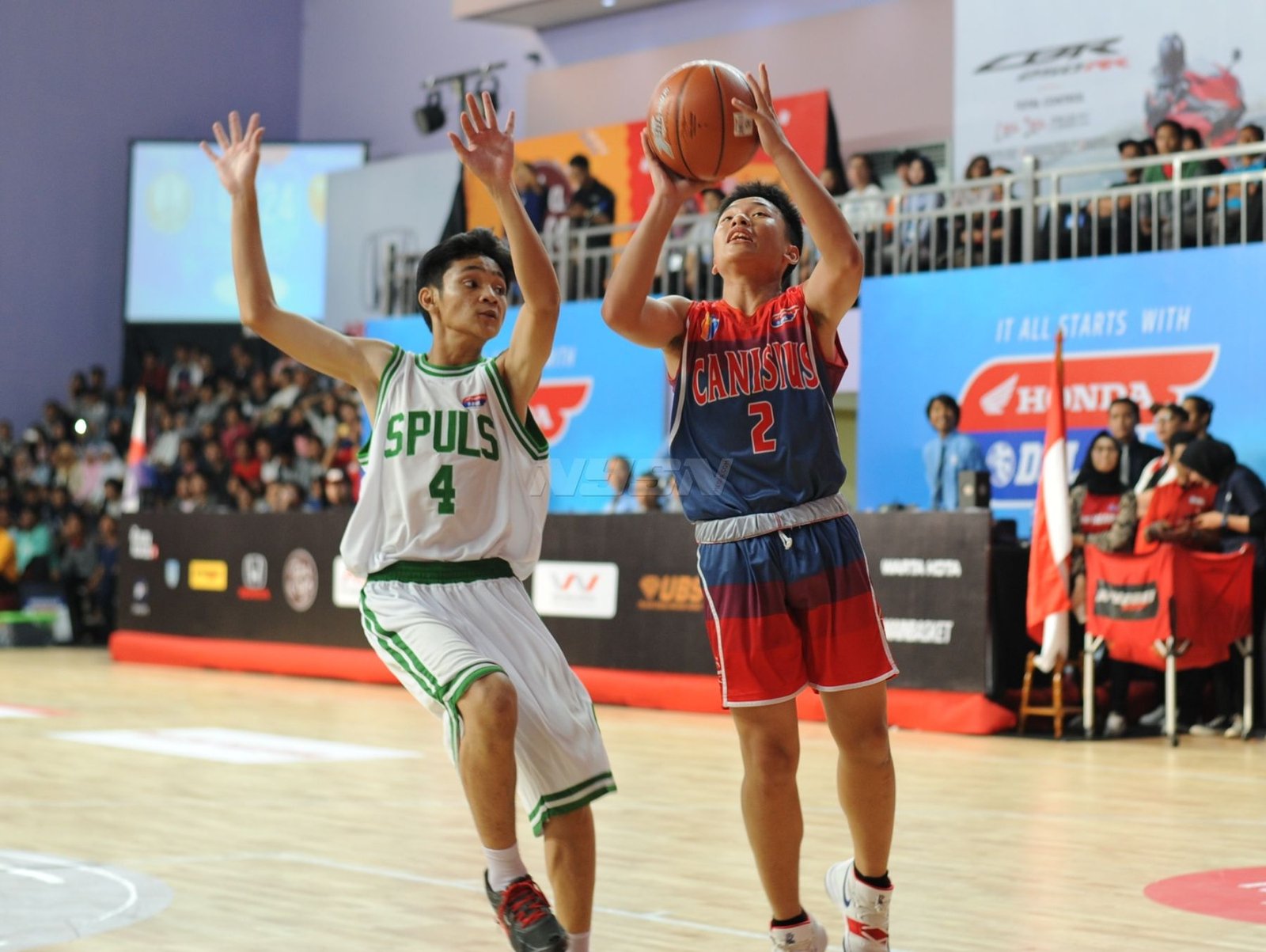 Opening Honda DBL North Region DKI Jakarta 2018 November 21, 2018September 23, 2018 by Prass Suporter Kanisius yang tidak berhenti bernyanyi mendukung tim kesayangannya Andakara Prastawa Dhyaksa ikut memeriahkan opening part Honda DBL DKI Jakarta Series 2018 dengan berpartisipasi di acara amal untuk Lombok. Pemain SMAN Tiga Puluh Jakarta terlihat berada dibawah tekanan saat akan melakukan free throw.
