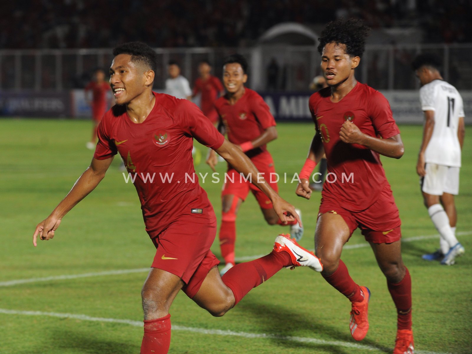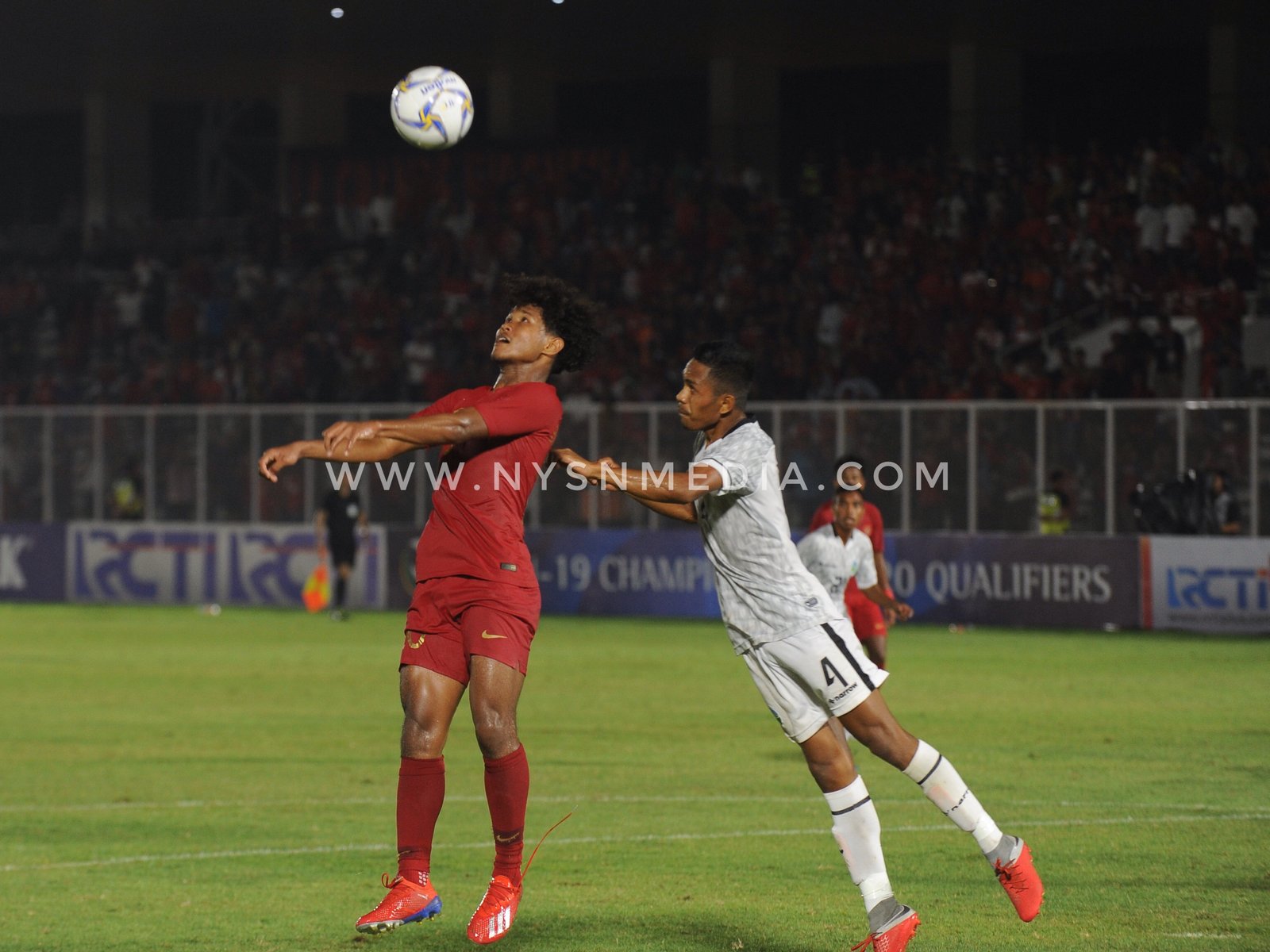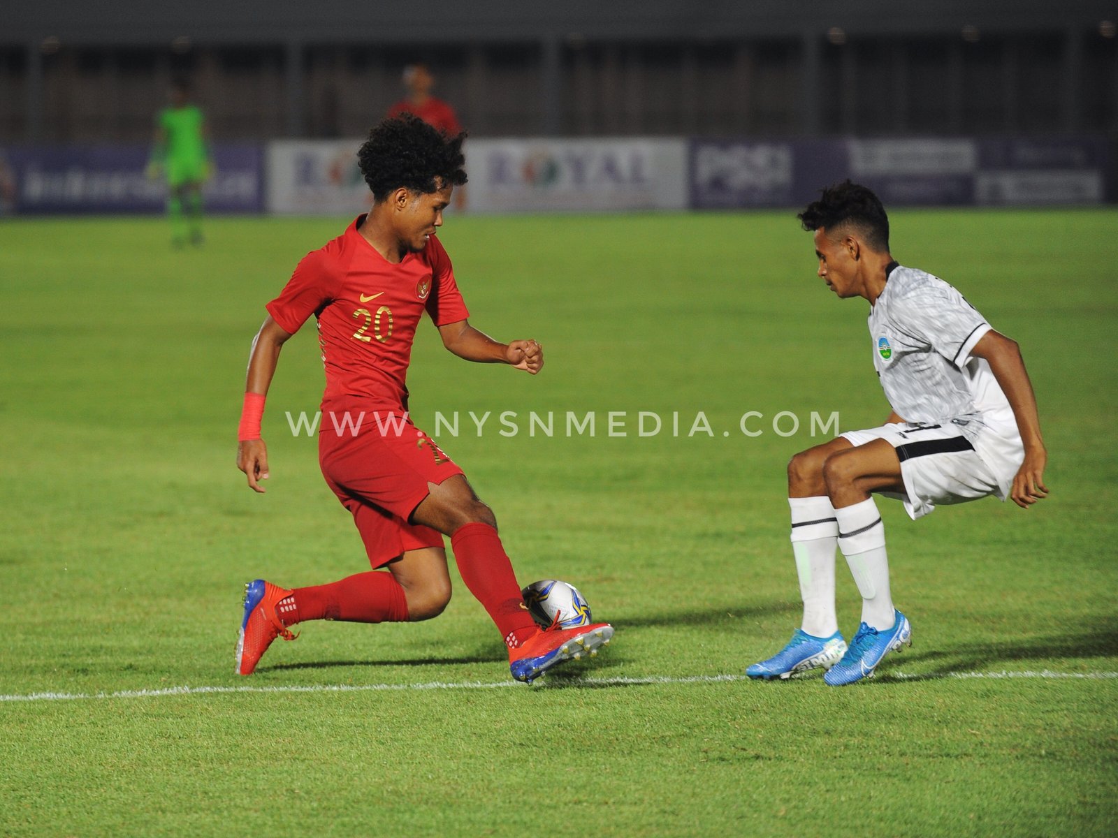 Hasil Timnas U-19 Indonesia vs Timor Leste Kualifikasi AFC U19 berakhir dengan skor 3-1. Gol skuat Garuda dicetak brace Fajar dan David Maulana. (NYSN/Pras)
