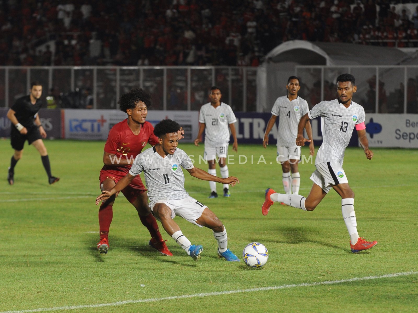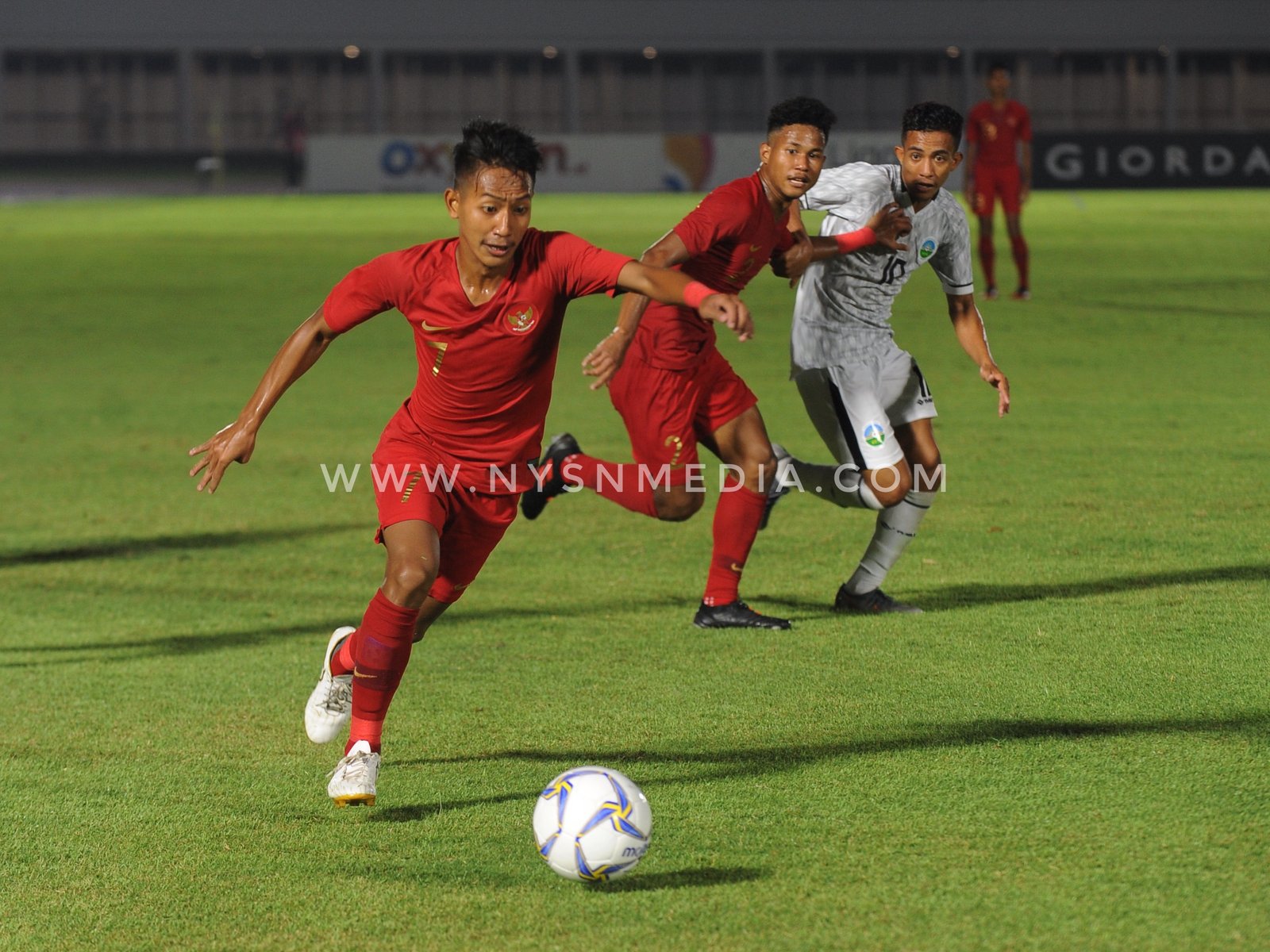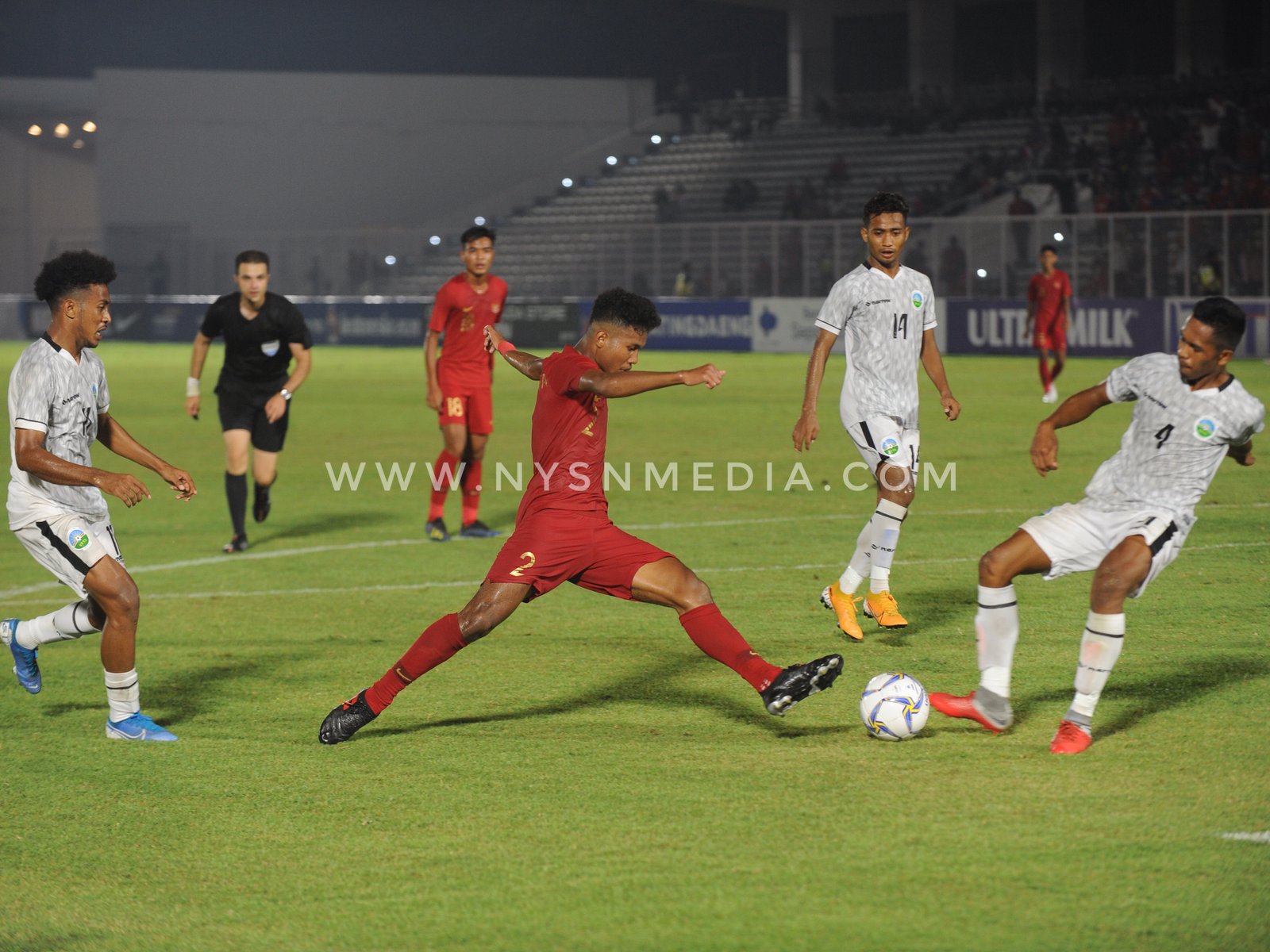 Hasil Timnas U-19 Indonesia vs Timor Leste Kualifikasi AFC U19 berakhir dengan skor 3-1. Gol skuat Garuda dicetak brace Fajar dan David Maulana. (NYSN/Pras)